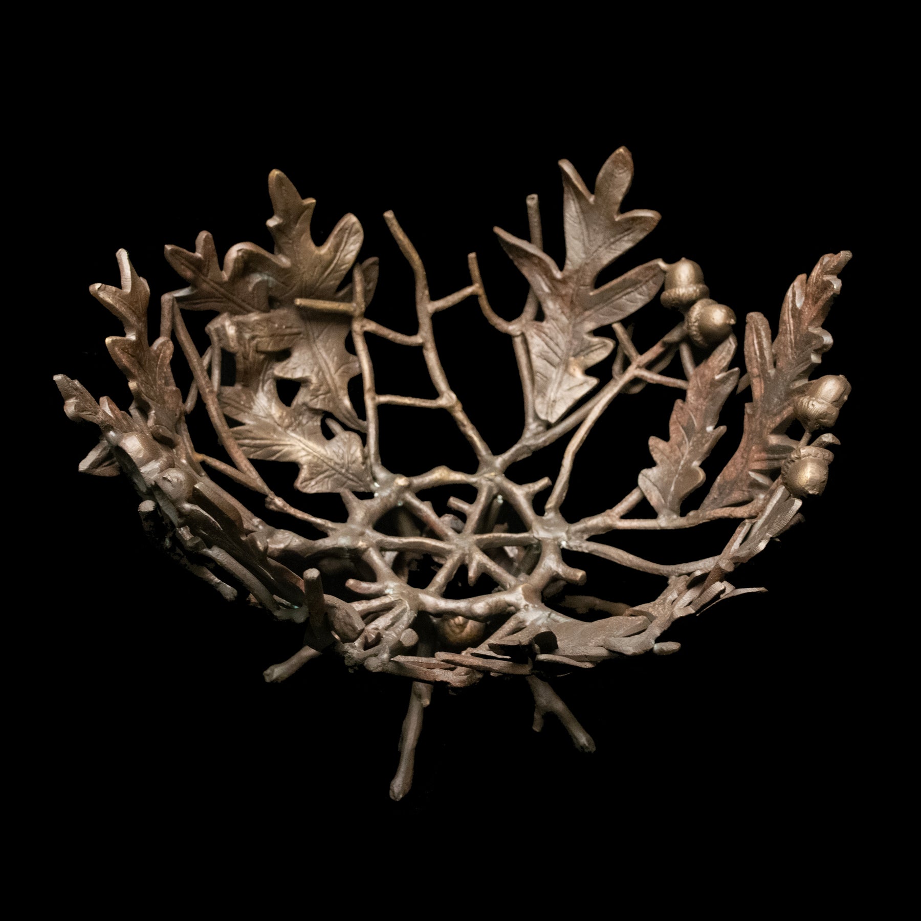 Materials: The Acorn & Oaks Basket is cast in bronze with an antique bronze finish.