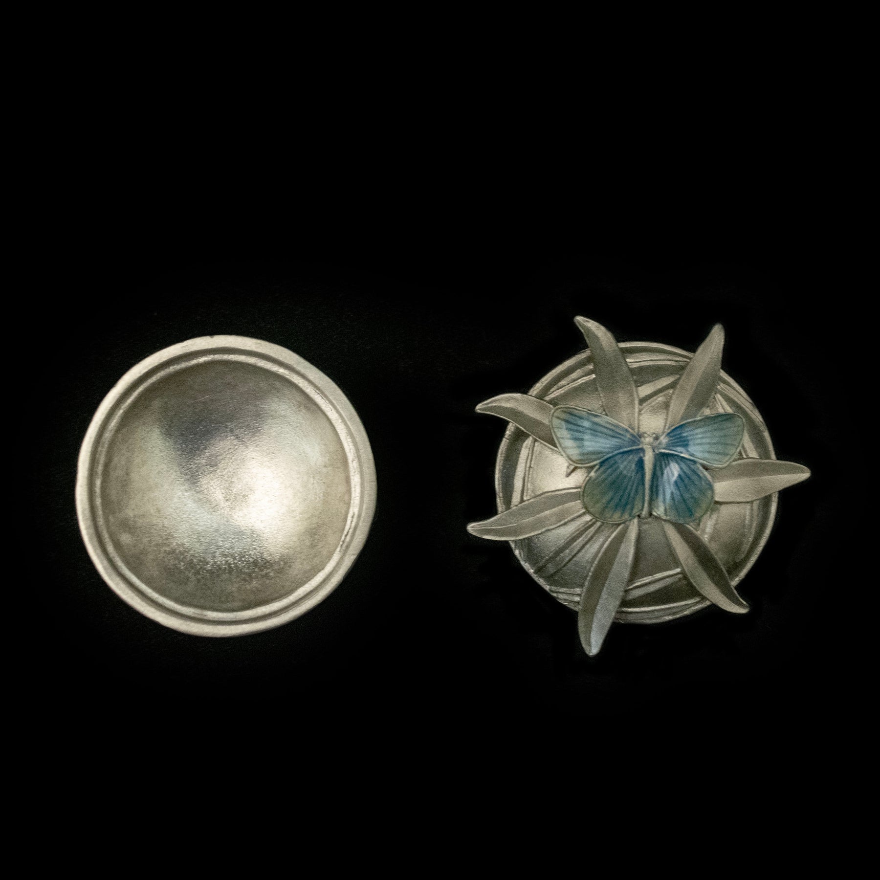 Materials: The Fenders Blue Butterfly Box is cast in pewter with a antiqued pewter finish accented with enamel.
