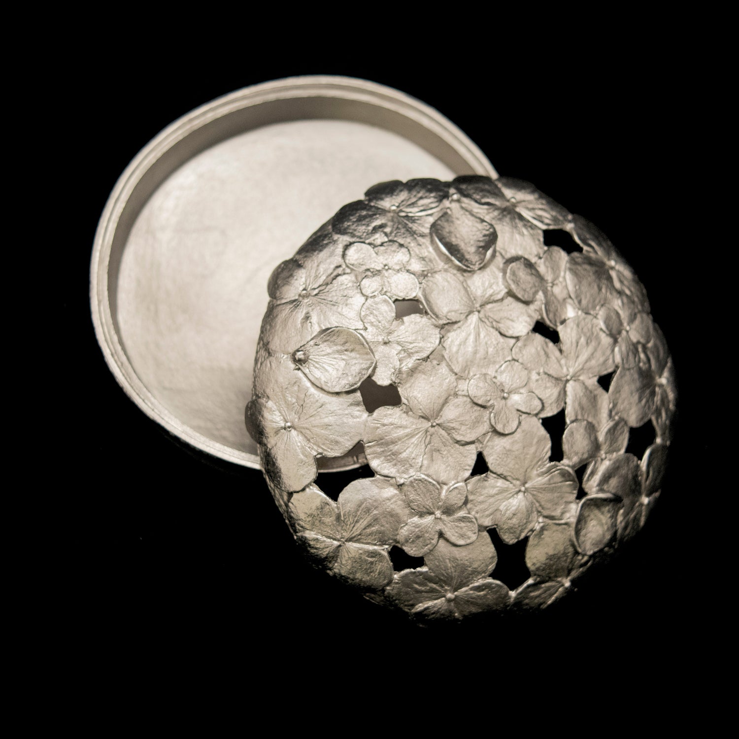Materials: The Hydrangea Box is cast in pewter with a choice of antiqued bronze or antiqued silver finish.