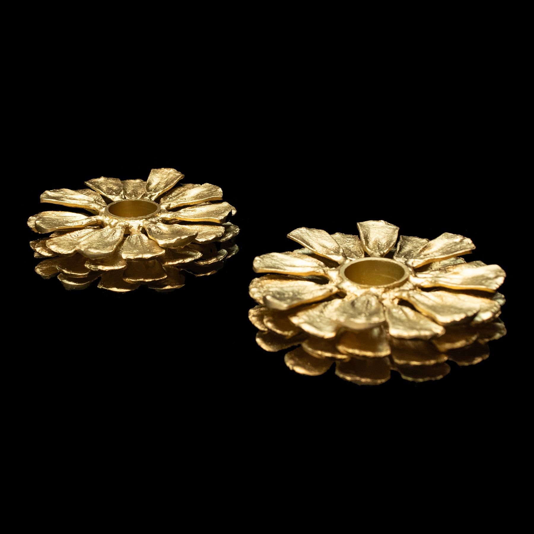 Materials: The Pine Cone Candle Holders are cast in bronze with a gold plated finish.